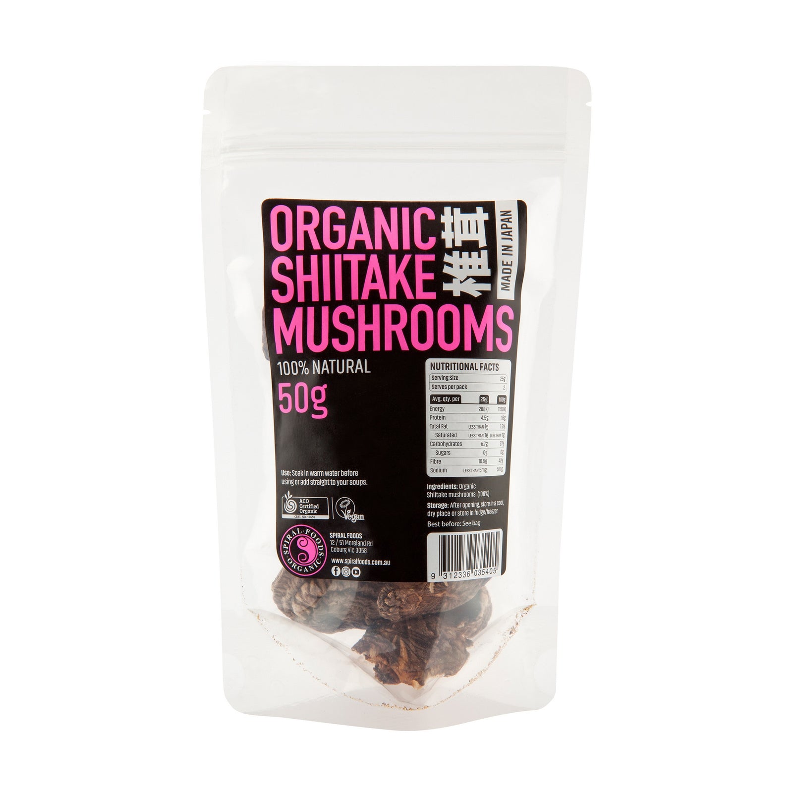 Spiral Organic Shiitake Mushrooms 50g